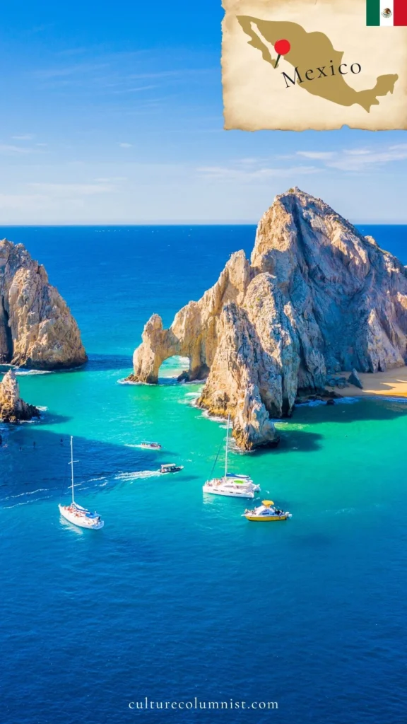 Perched at the southern tip of Mexico’s Baja California Peninsula, Cabo is famous for its jaw-dropping coastline where golden beaches give way to turquoise waters and dramatic rock formations rise straight from the sea.