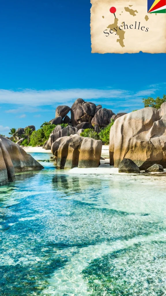 Here, the crystal-clear waters lap against powdery white sand, and towering granite boulders — worn smooth by centuries of wind and tide — rise like ancient sculptures from another world.