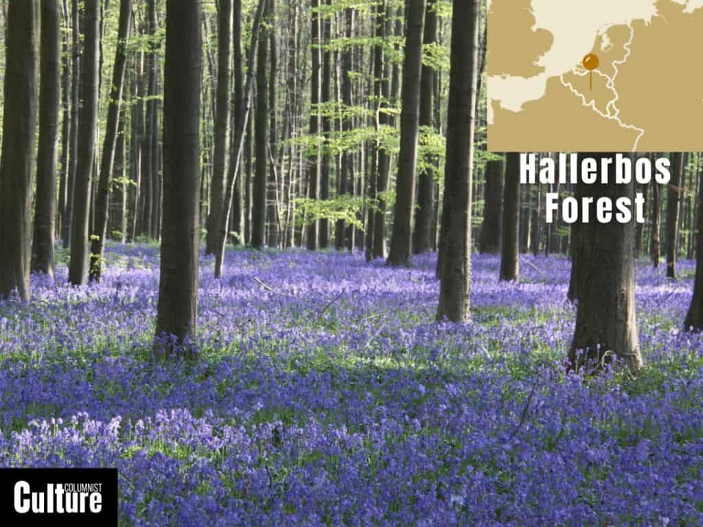 The Hallerbos Forest, known colloquially as “The Blue Forest,” is located in Belgium, specifically in the Flemish Brabant province, about 15 kilometers (9 miles) south of Brussels. Hallerbos is famous for its annual bluebell bloom, which turns the forest floor into a magical blue carpet.