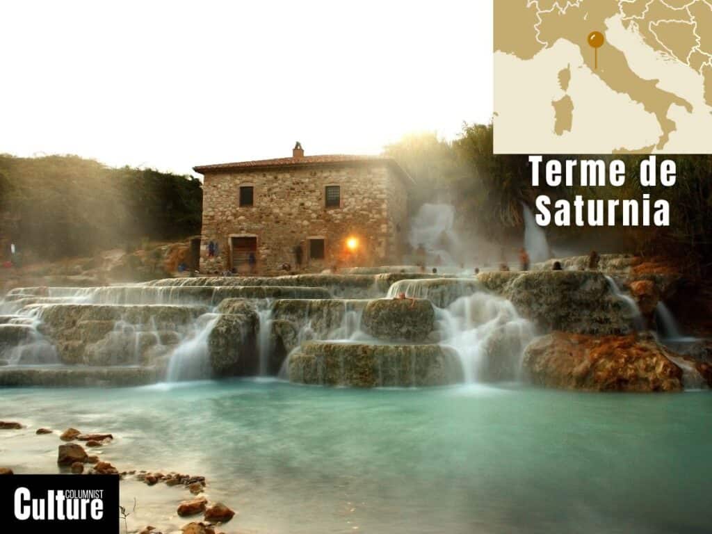 Terme di Saturnia is a thermal bath located in Tuscany, Italy. Legend has it that Saturn, the god of wealth, grew weary of human conflict and hurled a thunderbolt to the earth, causing the spring to emerge from the ground, ushering in a golden era of peace and agriculture.