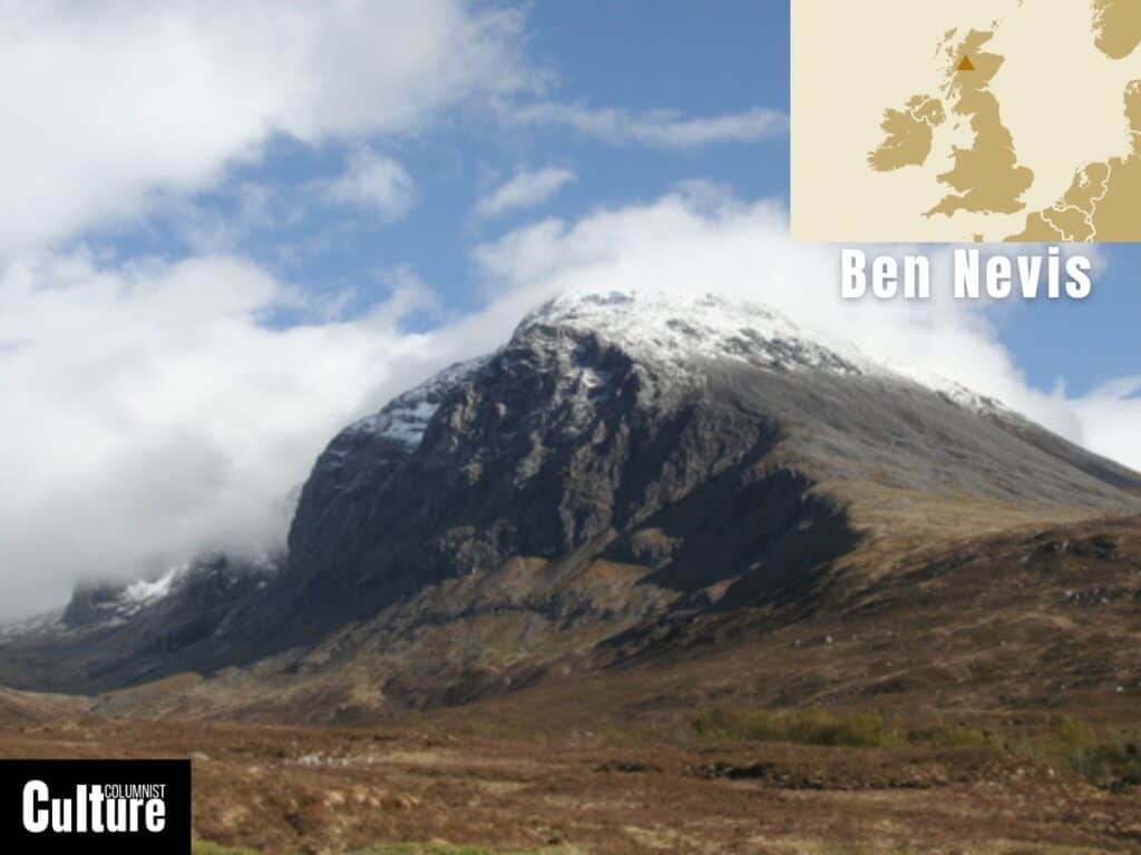 Ben Nevis is the highest mountain in the British Isles, located in the Grampian Mountain range in the Lochaber area of the Scottish Highlands. The mountain was formed from the collapsed dome of an ancient volcano, which can be observed on its north face, where the roof of the volcano collapsed 600m into the hollow magma chamber below.