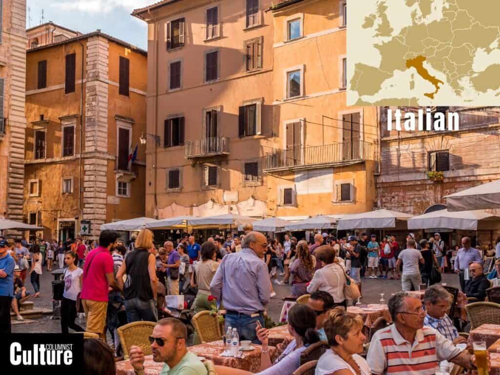 Italy is a country located in southern Europe, known for its rich history and contributions to art, music, and cuisine. The Italian people have a reputation for being warm and friendly and placing a high value on family, friendship, and community. These values are evident in how they greet friends and family with a customary double-cheek kiss.