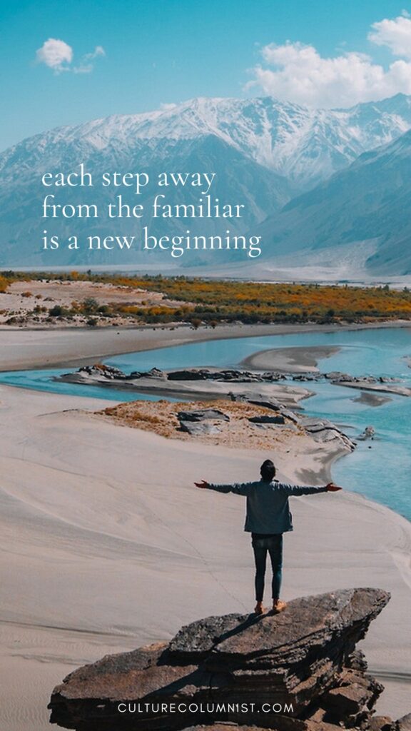 “Each step away from the familiar is a new beginning.”