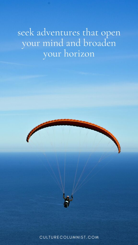 “Seek adventures that open your mind and broaden your horizon.”